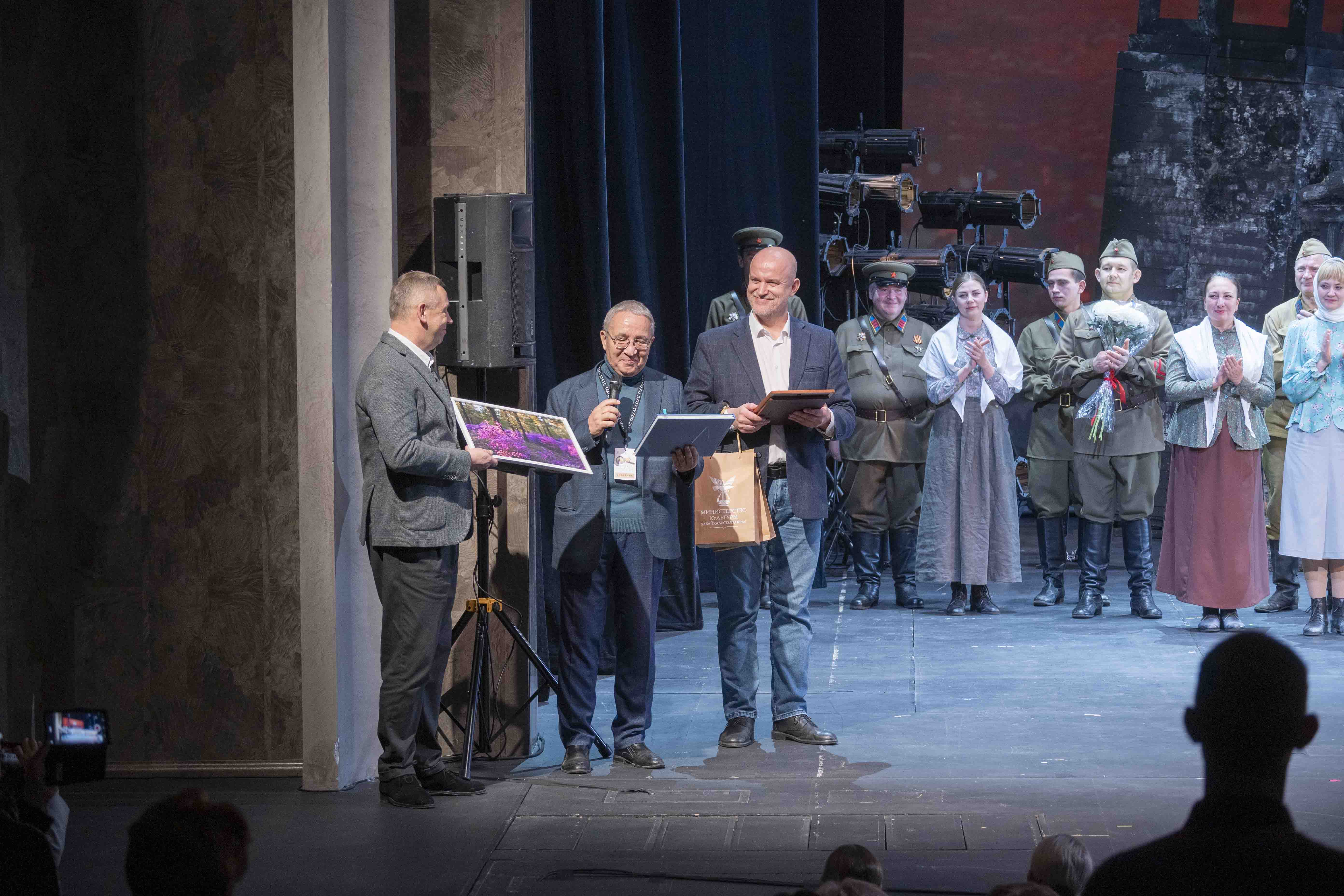 Всем известно о нашей поездке на московский фестиваль «Атлас театральной России». 2 ноября на сцене театрального центра «Мастерская «12» Никиты Михалкова театр представил Творчество Забайкальского драматического театра спектаклем - ораторией «Они сражались за Родину». Спектакль принят на «Ура», цветы и овации-результат восприятия творческой работы забайкальцев. Остается добавить, что все происходящее - организационный процесс, работа транспорта, обслуживающего персонала - было поставлено на высокий уровень. Спасибо всем большое. Предлагаем вам мгновения прошедшего фестиваля.